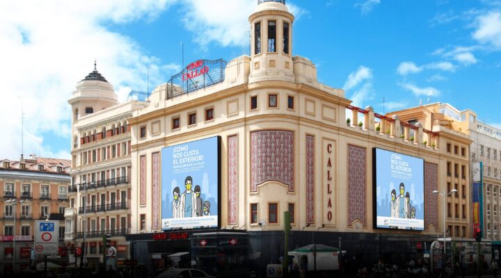 Somos, además, pioneros en publicidad exterior digital de gran formato en centros urbanos. Contamos con dos pantallas digitales gigantes (102 m² y 130 m² ), en la plaza más visitada de España (150 millones de personas al año) y la tercera más transitada de Europa. Unos soportes dotados de las últimas novedades tecnológicas (3D, realidad aumentada, interactividad, sincronización, retransmisiones en directo, retargeting mobile…) y con una calidad de imagen sin precedentes.